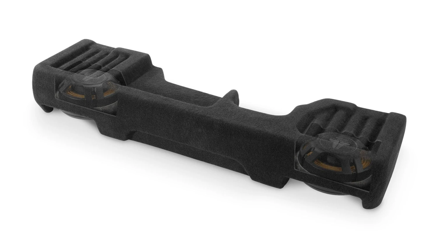 Fortunately, our engineers welcomed this challenge head on and developed a subwoofer solution that fills your Crew Cab with loads of deep bass output. Featuring an all-fiberglass, sealed enclosure design, this Stealthbox® houses two of our revolutionary 10TW3 thin-line subwoofers and installs neatly under the rear seat, without compromising rear seat comfort. Rear seat folding and recline are unaffected, and we even left