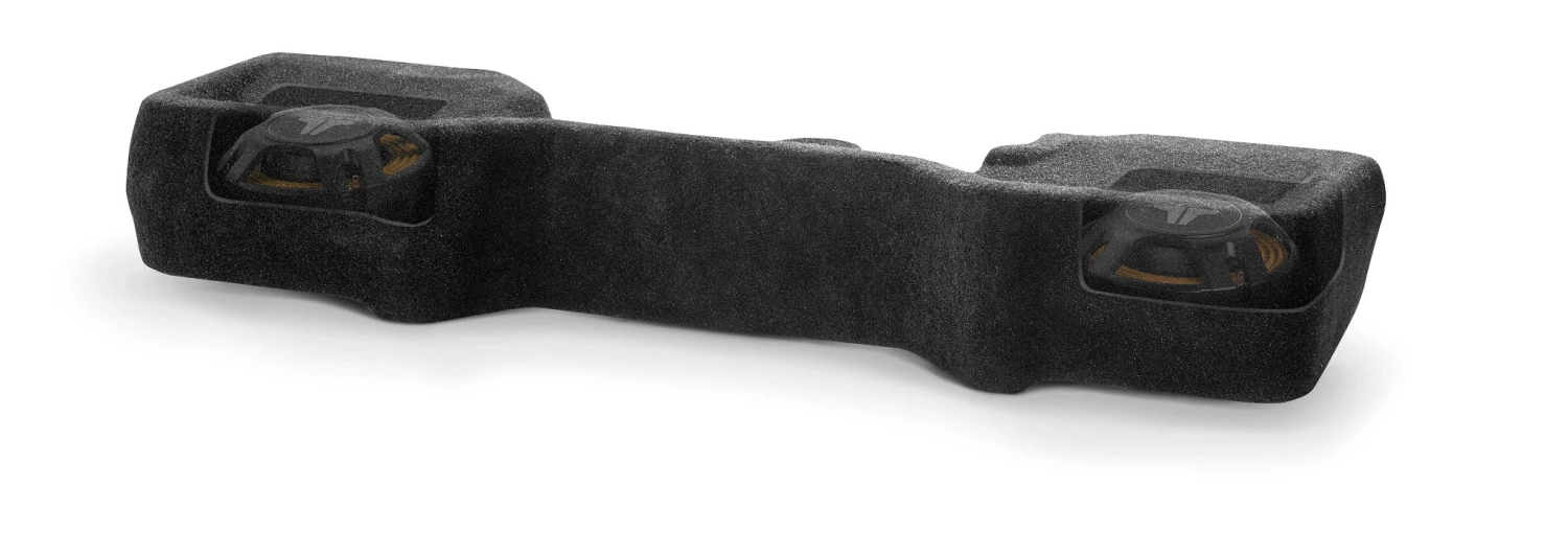 Luckily, our engineers are experts in maximizing bass from minimal space and developed a subwoofer solution that fills your Quad Cab with loads of powerful bass output. Featuring a 100% fiberglass, sealed enclosure design, this Stealthbox® houses two of our innovative 10TW3 thin-line subwoofers and installs neatly under the rear seat, without compromising rear seat comfort or folding. We even left space on the enclosure that’s perfect for a small, hidden amplifier installation!