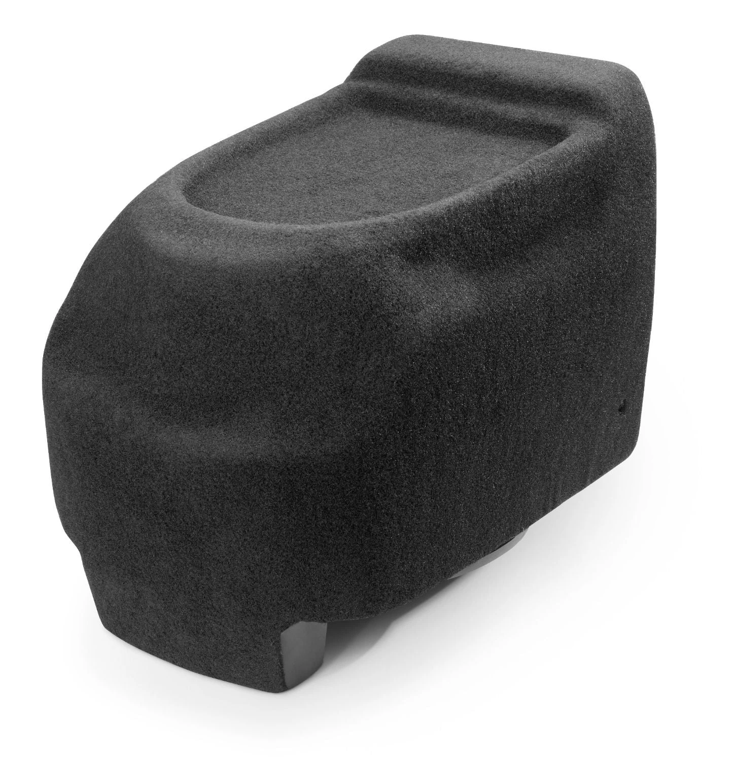 The Hard Data: Contains one 12W3v3-2 in a down-firing sealed enclosure. 500 watt power handling. Wired for 2 ohm mono. Stealthbox® installs inside rear factory center console and fires down into the floor. Cup holders are not affected. Console storage is significantly reduced. The factory console is not supplied with the Stealthbox®. Permanent modification of the inner-console is necessary. Will not fit in trucks with rear split bench seats. Will not fit ’03-Up Lincoln Navigator.Â
