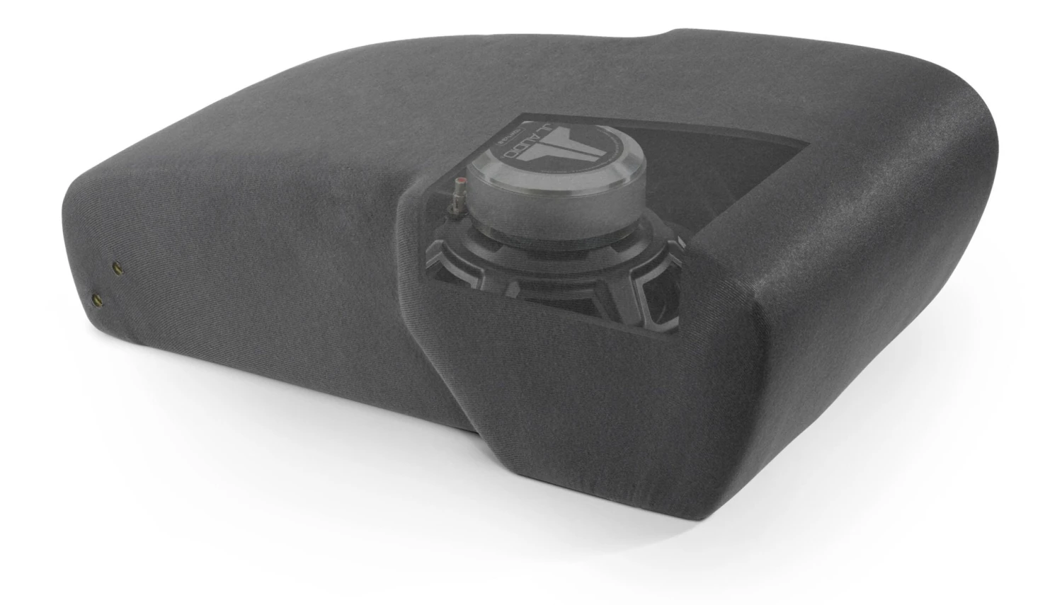 The Stealthbox® replaces the center seat cushion of the front seat for trucks equipped with the 40/20/40 front bench seat. The factory upholstery then covers it for a totally stock appearance. A down-firing 10-inch subwoofer in a sealed enclosure is precisely matched to the truck’s acoustics for impressive sub-bass performance.