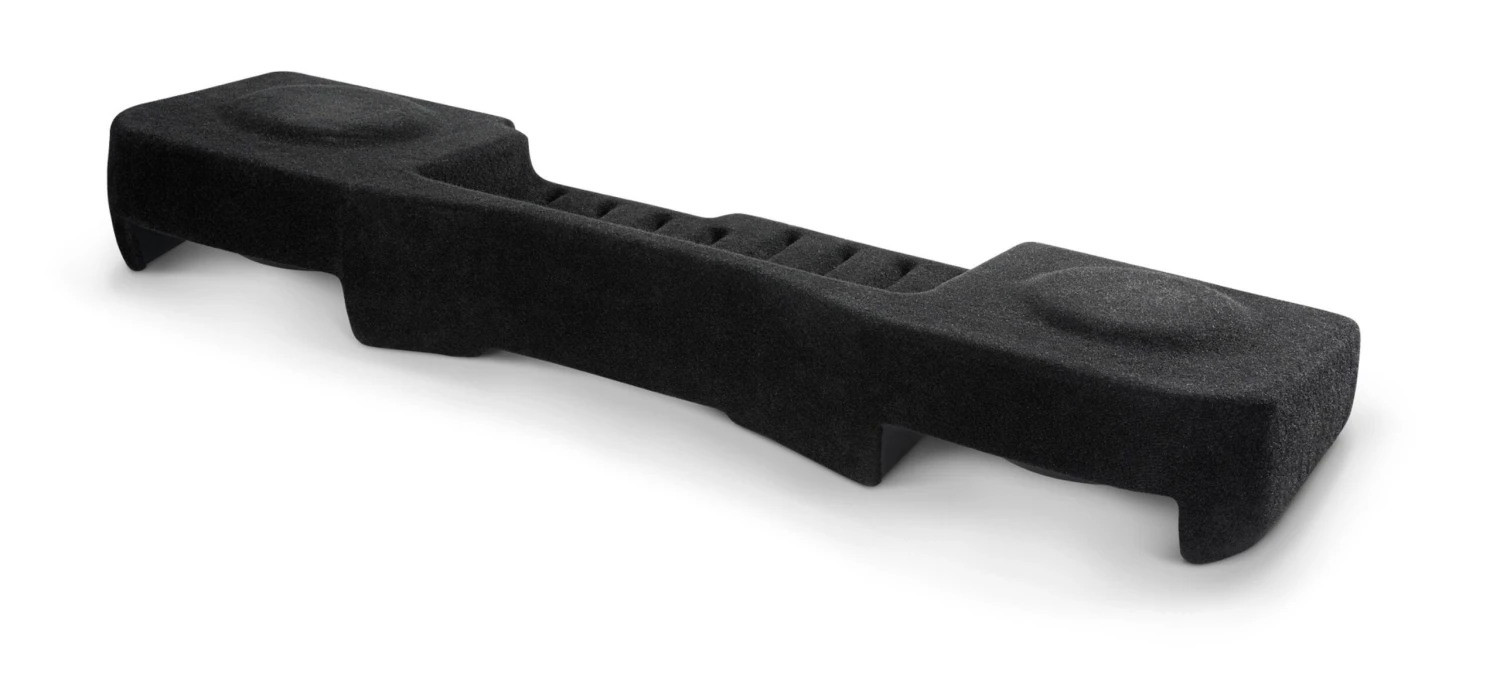 The Stealthbox® slips under the truck’s rear seat and features two of our revolutionary 10TW3 thin-line subwoofers, giving you absolutely stellar sub-bass impact and quality. We even left a perfect spot in the middle of the enclosure for a clean, hidden amplifier installation!