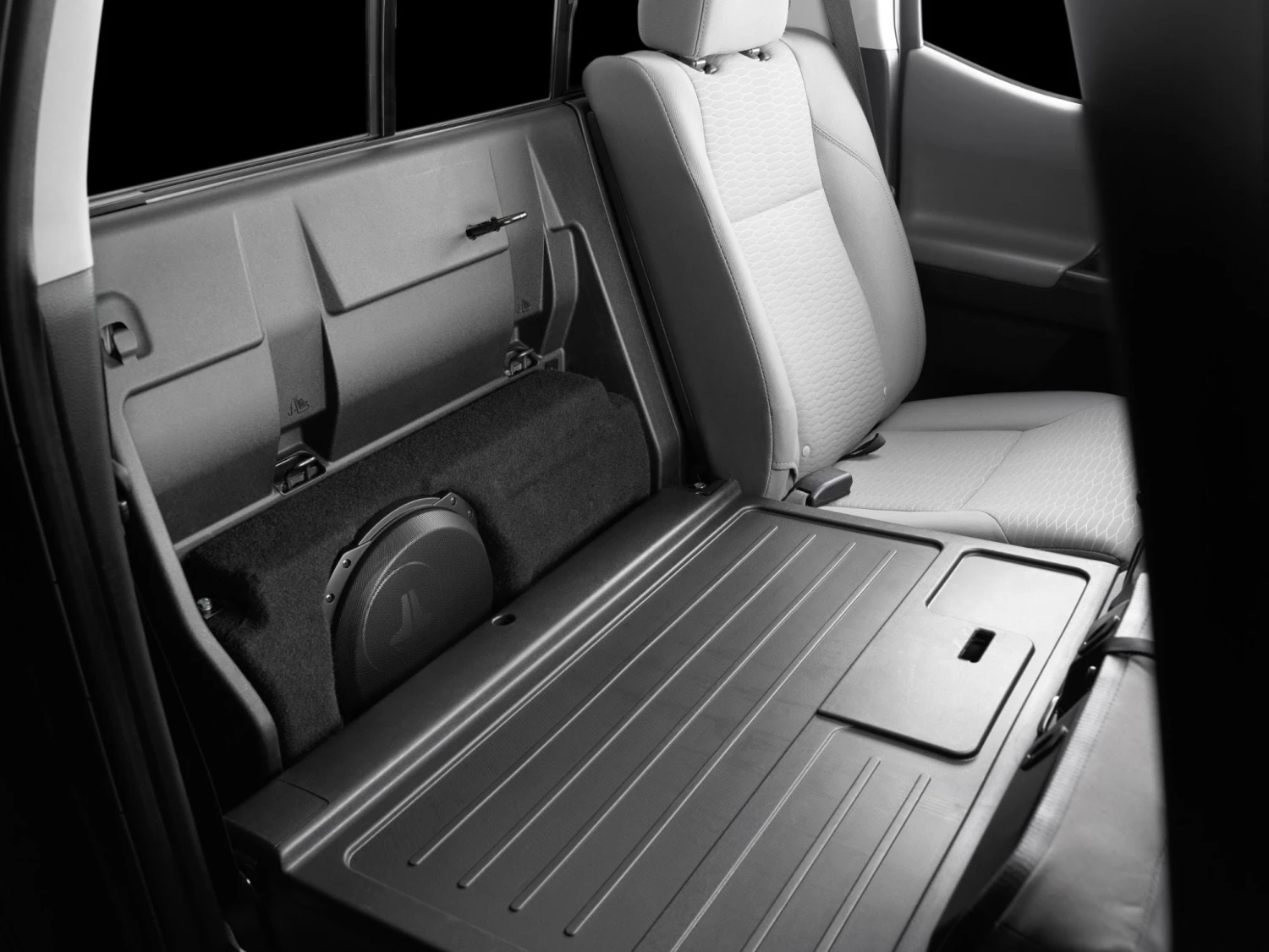 Toyota’s Tacoma Double Cab has a highly optimized interior design with almost zero wasted space. This makes integrating a serious subwoofer a pretty major challenge, but not one that our design team could not overcome.