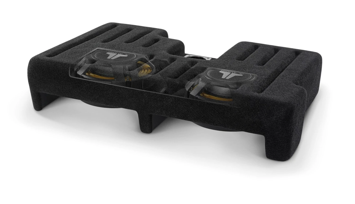 The Hard Data: Contains two 10TW3-D8 Subwoofers in a sealed enclosure. 800 watt power handling. Wired for 2 ohm mono. Installs under driver-side rear seat and requires no permanent modifications to the vehicle. Will not fit Tundra CrewMax.