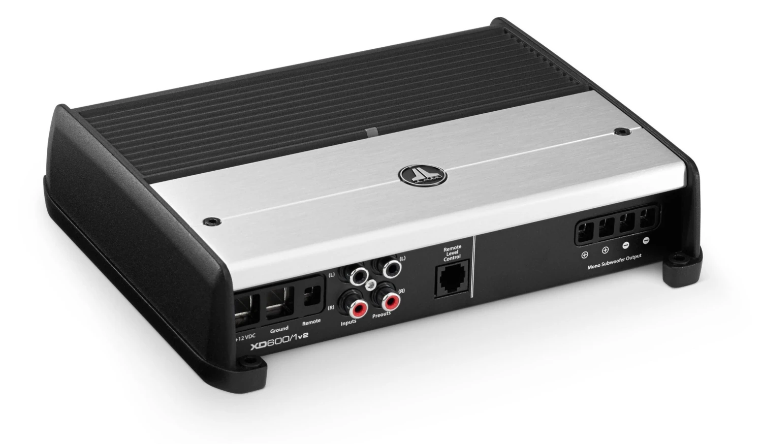 The XD600/1v2 also features the v2 Spec feature set, which consists of automatic turn-on capability (via signal sensing or DC-offset sensing), and a dual-range differential-balanced input section able to handle a wide range of input voltage levels. With the addition of an HD-RLC remote level control (sold separately), the amplifier’s level can be directly controlled from the driver’s seat.